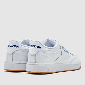 The Reebok Club C 85 SHOES The Rebirth of a Classic Sneaker There's nothing quite like a fresh white sneaker, and the Club C 85 is the original. Clean white leather keeps these women's shoes in place and pairs with any modern look. A durable outsole makes the look last, while the classic logo on the side pays homage to our roots. Specifications: Soft leather upper for support and comfort, Low-cut design for mobility and freedom of movement, Durable, high-abrasion rubber outsole