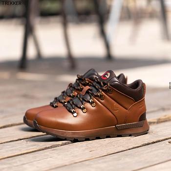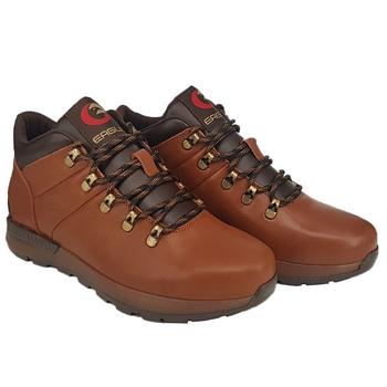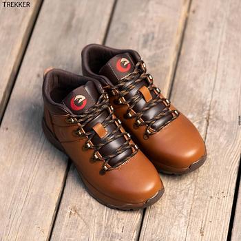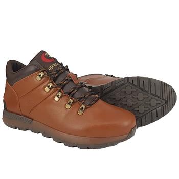 ✅ Mid-length men's boot with a mid-length shank. ✅ Color: Brown. ✅ Lightweight and durable synthetic leather upper. ✅ Water resistant. ✅ Lace-up eyelets with secure closure for a comfortable fit. ✅ Sneaker design. ✅ External heel counter supports the back of the foot. ✅ Lightweight cushioned compression molded footbed.