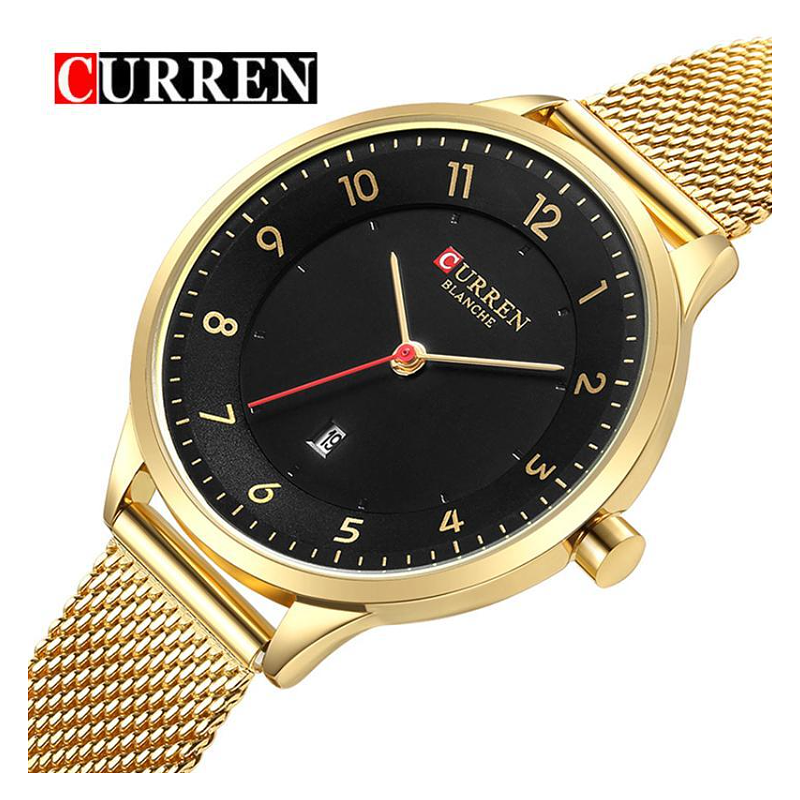 ساعة CURREN ستانلس ستيل ستاتي لون ذهبي ق اسود