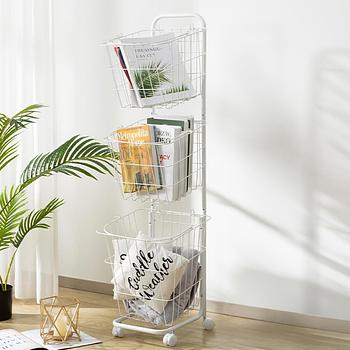 المواصفات: ثلاث سلال واسعة: توفر مساحة كافية لتخزين الكتب، المجلات، الوسائد، أو أي مستلزمات أخرى. هيكل معدني متين: مصنوع من مواد عالية الجودة لتحمل الوزن وضمان الاستدامة. عجلات مرنة: تسهل التنقل بين الغرف بكل سلاسة. لون أبيض أنيق: يتناسب مع أي تصميم داخلي ويضفي لمسة من التنظيم والنظافة. تصميم عمودي: يساعد على توفير المساحة الأرضية، ما يجعله مثالياً للأماكن الصغيرة. المزايا: متعدد الاستخدامات: يمكن استخدامه في غرف المعيشة، المكاتب، الحمامات، أو حتى المطبخ. سهولة الوصول: تصميم مفتوح يتيح الوصول السريع إلى المحتويات. تنقل مريح: مزود بعجلات مرنة لسهولة النقل من مكان لآخر. سهل التجميع: لا يحتاج إلى أدوات معقدة لتركيبه.