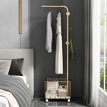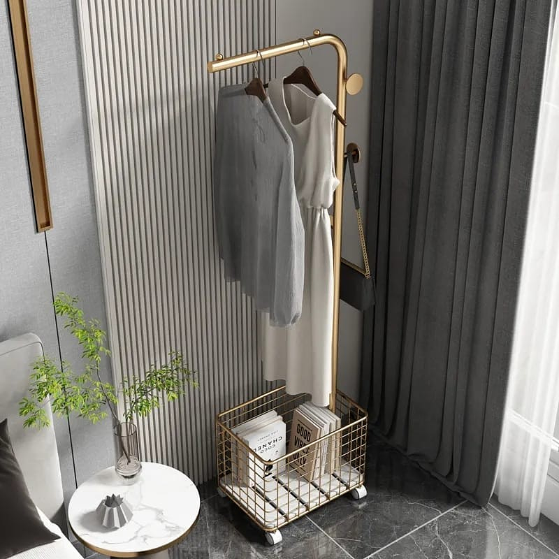 المواصفات: تصميم أنيق: مصنوع من معدن مطلي باللون الذهبي لإضافة لمسة من الفخامة إلى مساحتك. مساحة تعليق واسعة: يوفر عموداً متيناً لتعليق الملابس الطويلة والقصيرة. سلة تخزين سفلية: مناسبة لتخزين الأحذية، الحقائب، أو الإكسسوارات. عجلات مرنة: يتيح نقل الستاند بسهولة من مكان لآخر دون عناء. خطافات جانبية: مزودة لتعليق الحقائب أو الإكسسوارات الصغيرة. المزايا: متعدد الاستخدامات: يناسب غرف النوم، غرف الملابس، أو المحلات التجارية. مظهر عصري: تصميم بسيط وأنيق يتناغم مع مختلف أنماط الديكور. سهولة النقل: العجلات تجعل التنقل داخل المنزل أو الغرفة أمراً سهلاً. هيكل قوي: يضمن التحمل والثبات، مما يجعله اختياراً يدوم طويلاً.