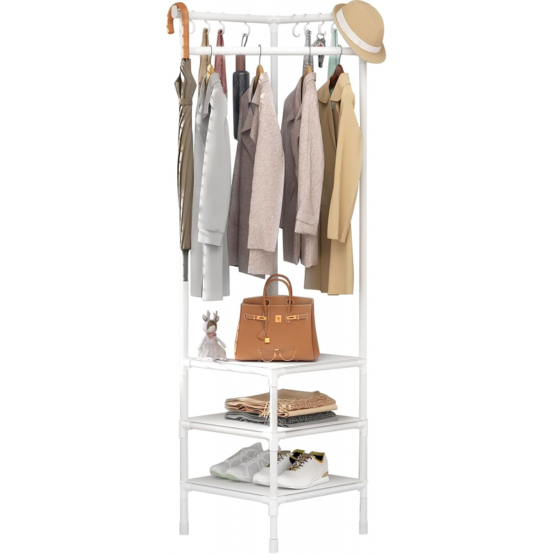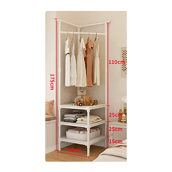 المواصفات: الأبعاد: ارتفاع 175 سم، عرض 60 سم، عمق 45 سم. تصميم زاوي: يوفر استغلالاً ذكياً للمساحة، مما يجعله مثالياً للغرف الضيقة. ثلاث طبقات عملية: تشمل قضيب لتعليق الملابس ورفوف متعددة لتخزين الأغراض المختلفة. مواد متينة: مصنوع من هيكل قوي ومقاوم للصدأ لضمان الاستخدام الطويل. تصميم عصري: مظهر بسيط يتناسب مع جميع أنماط الديكور. المزايا: تنظيم مثالي: يساعدك على ترتيب الملابس، المناشف، أو الأدوات المنزلية بشكل عملي. سهل التجميع: لا يتطلب أدوات معقدة، مما يجعله جاهزاً للاستخدام في دقائق. مساحة إضافية: حل ذكي للمساحات الصغيرة والمنازل ذات التصميم الحديث. متعدد الاستخدامات: يناسب غرف النوم، الحمام، وحتى المكاتب.
