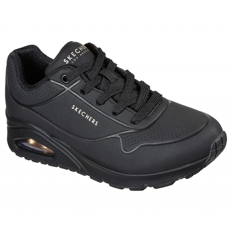- Skechers Women's Uno - Stand On Air Wide Fit Shoe Classic air-cushioned comfort gets a fresh update in Skechers Street™ Uno - Stand on Air. This lace-up fashion style features a smooth perforated synthetic upper with an Air-Cooled Memory Foam insole, and a Skech-Air visible air-cushioned midsole. Key Features Skechers Air-Cooled Memory Foam® comfort insole Skech-Air® visible air-cushioned midsole Design Details Wedge fit with hidden 1-inch heel Smooth synthetic 'durabuck' perforated upper Flexible rubber traction outsole 1 1/2-inch heel Skechers® logo detail Product Highlights Air Cooled Memory Foam