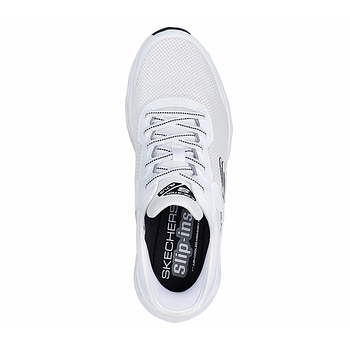? الخامة: جزء علوي شبكي مع طبقات اصطناعية Hotmelt لمظهر عصري ودعم إضافي.? الإغلاق: أربطة مطاطية مرنة لسهولة الارتداء والخلع.? الارتفاع: كعب بارتفاع 1.75 إنش لتوسيد إضافي وراحة مثالية.? التصميم: عصري، خفيف الوزن، ومناسب لجميع الأوقات.? اللون: أبيض أنيق بتفاصيل سوداء ولمسات رياضية مميزة.? الشعار: تفاصيل شعار Skechers® لمظهر مميز.