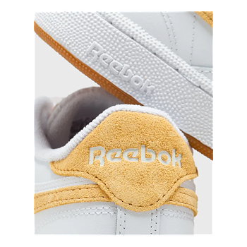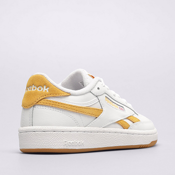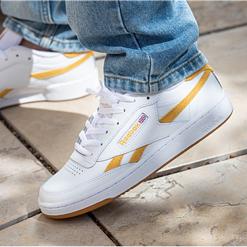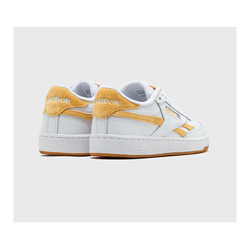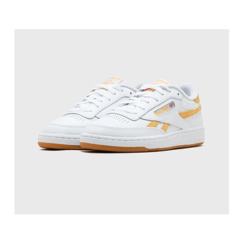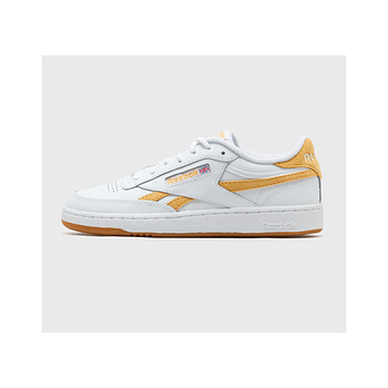 - Reebok Womens' Club C Revenge Vintage Shoes A celebration of clean, minimalist design. The Club C Revenge from Reebok features an 80s-inspired tennis style with contrasting side stripes. The high-quality upper material provides a soft, flexible feel. Lightweight cushioning and a foam insole ensure high comfort. An abrasion-resistant outsole guarantees long-lasting durability. Article Number: 100033437 Gender: Women Color: FTWR WHITE/RETRO GOLD F23-R/REEBOK Material: 30% Rubber, 70% Leather