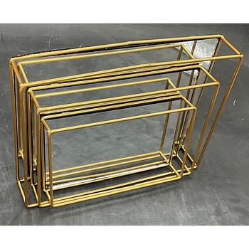 3-piece gold tray set with mirrored base... for decoration and serving