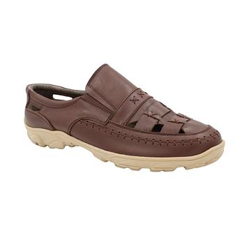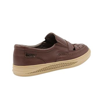 حذاء جلد طبيعي للرجال لون بني ونعل اسود