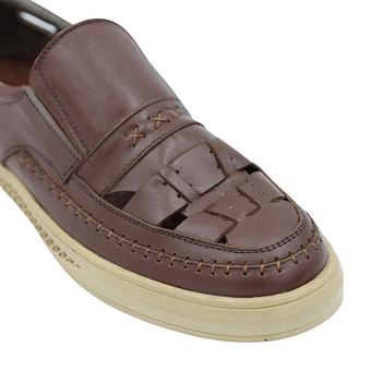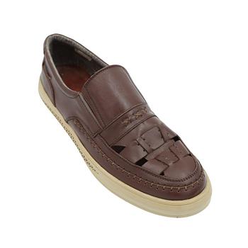حذاء جلد طبيعي للرجال لون بني غامق ونعل بيج