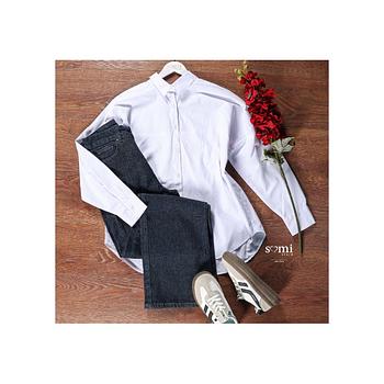 قميص لون أبيض عاجي تطريز على الجانب