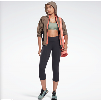 THREE QUARTER-LENGTH TRAINING LEGGINGS WITH A HIP POCKET The right gear makes you feel like you can conquer any workout. These women's Reebok training leggings are made with Speedwick to keep you dry during sprints on the bike or reps with the dumbbell. MOTIONFRESH helps eliminate odour to up your confidence. A wide waistband and curved seams offer a stay-put fit that flatters.