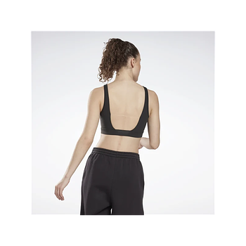 A BRA TOP MADE OF SOFT, STRETCHY JERSEY From deep binds to arm balances, this women's Reebok bra top allows you to flow freely from pose to pose. It's made of stretchy jersey, with built-in pads for extra support. The long length and square neckline provide coverage to keep you feeling confident in any workout.