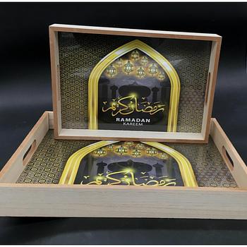 طقم صواني خشب 2 قطعة .. رمضان كريم